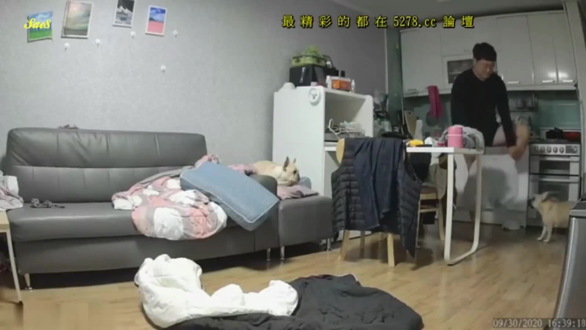 监控偷拍骚妇在家偷汉家里小狗看呆了